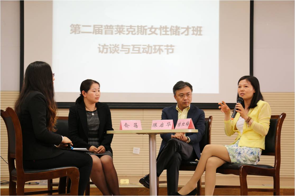 最后的访谈环节,在座学员们就如何培养创新思维、女性在职场工作的优势、个人性格对其工作的影响等问题与陈启华、俞蓓、楼红梅几位进行了热烈深入的讨论。