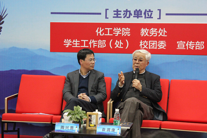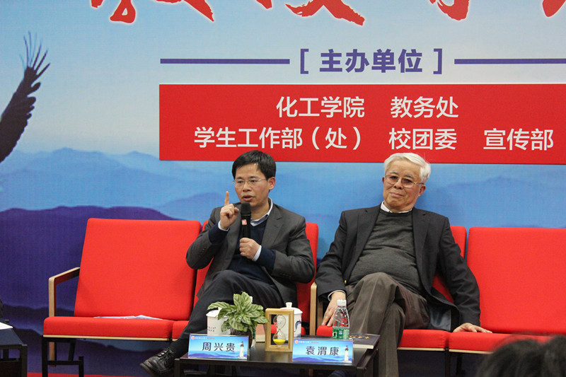活动伊始,三位教授分别针对本次话题发表了自己的感悟。袁渭康教授表示,作为一名老员工,应着重修炼“内外功”。外功体现在“认真做事,实在做人”,内功修炼需要同学们通过每一件小事不断培养和训练自身的克服困难的心理素质。当内外功兼修时,无论未来有多少未知与迷茫,内心都会有强烈的意志去面对,那么任何困境都可以从容应对了。