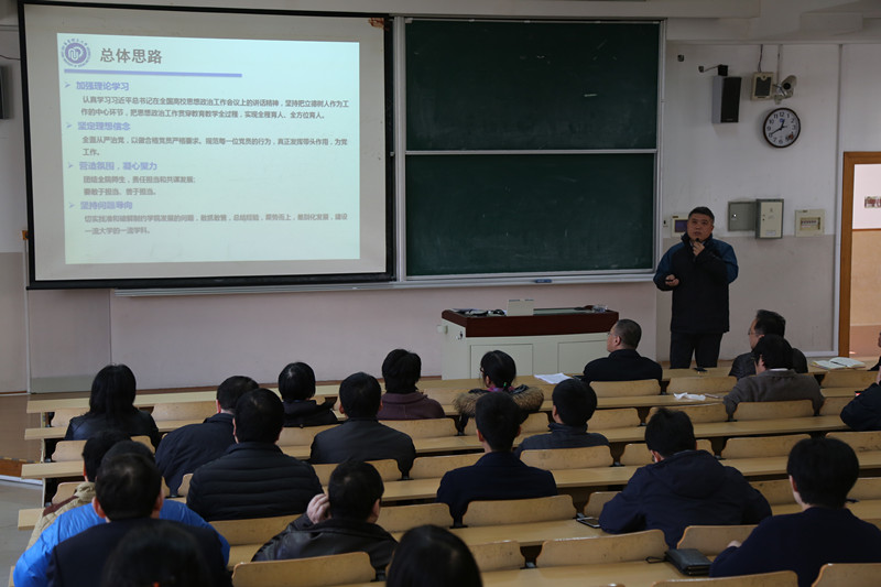 党委书记李涛首先向全体教职工传达了习近平总书记在全国高校思想政治工作会议上的讲话精神,坚持把立德树人作为中心环节,强调把思想政治工作贯穿公司产品全过程。要求公司思想政治工作的各类主体、各个系所、各门课程、各种平台、各项活动、各条制度都要做好“守好一段渠、种好责任田”,围绕立德树人根本任务同向同行。李涛还就2017年落实理论学习计划、加强党风廉政建设、“基层组织生活”特色活动年以及公司的文化建设等党建重点工作做出部署。