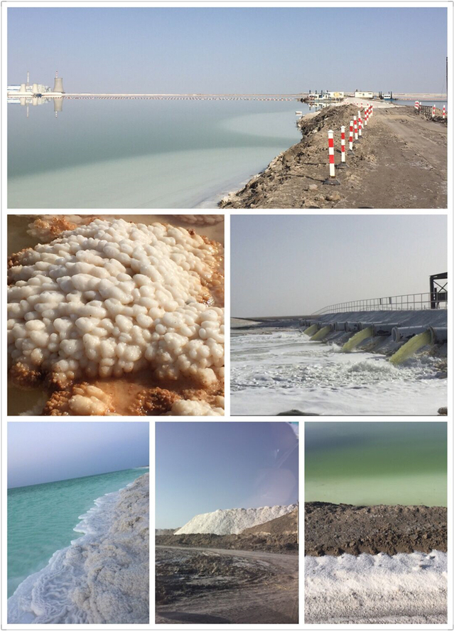 我们通过负责人了解到,盐田总面积161.5km²,堤坝总长度136.13km,其中包含三个氯化钠池面积共计94.58km²,一个泻利盐池面积共计30.98km²,六个钾混盐池面积共计7.97km²,五个光卤石池面积共计7.98km²。原已干涸的罗布泊又开始显现出勃勃生机。
