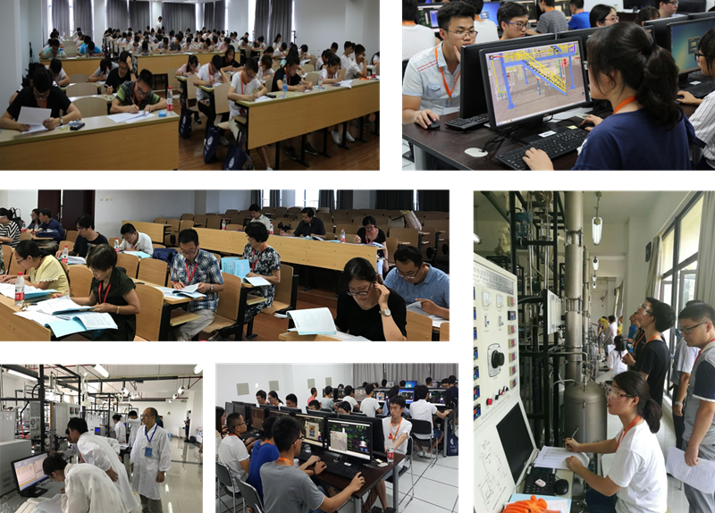 冒着上海地区破145年来高温纪录的酷热天气,参赛队员们在教室里苦思冥想、奋笔疾书;在计算机房的虚拟化工单元装置上开开关关,控制流量、温度、压力等操作参数;在化工原理实验室动手操作,记录数据,三人一组完成竞赛任务。参赛队员们面对不熟悉的装置和炎热的天气,不畏酷暑,发挥团队精神,通力合作,圆满完成比赛任务,用实际行动展示了新一代老员工的精神风貌。