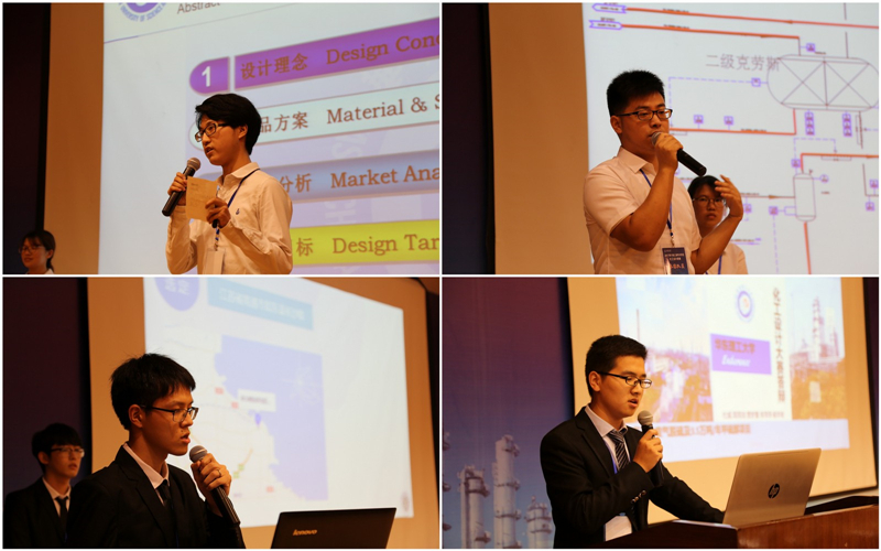 一一本届竞赛的题目是“针对某一含硫工业废气源设计一套深度脱硫并予以资源化利用的装置”,要求参赛队完成项目的可行性论证、工艺流程设计、单元设备计算和车间设备的平立面布置及全厂的厂区规划,并对生产装置的安全性和环境影响进行合理的评价。竞赛环节在简短的开幕式之后紧锣密鼓地展开。19支队伍分别就此以PPT的形式做出汇报,并回答评委提问。与此同时,还有多名评委在场外对各支队伍的文档作品做出评阅。大赛评委来自各所院校及工程设计公司,有效地保证了评审的公正性。经过激烈角逐,19支队伍中的前8名进入了决赛环节。决赛环节形式与预赛一致,但每个队伍的作品都要经过8位评委考察,8支队伍各有特色,充分展现了当代老员工积极向上的精神风貌。