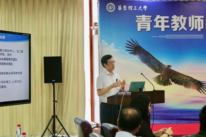 在互动提问环节,为了烘托活动气氛,同为化工类培训基地负责人的主持人赵双良从自身实际出发,以青年教师的视角来和大家共同探讨如何平衡科研和教学。赵老师曾获得校青年教师课堂教学竞赛的一等奖,他认为两者是可以同时兼顾的,用科研的专注专研精神来对待教学,用做教学的踏实厚重态度来对待科研。他还提醒各位青年教师要严格遵守教学制度和教学规律,用好的口碑来赢得自己在课堂上的教学魅力。