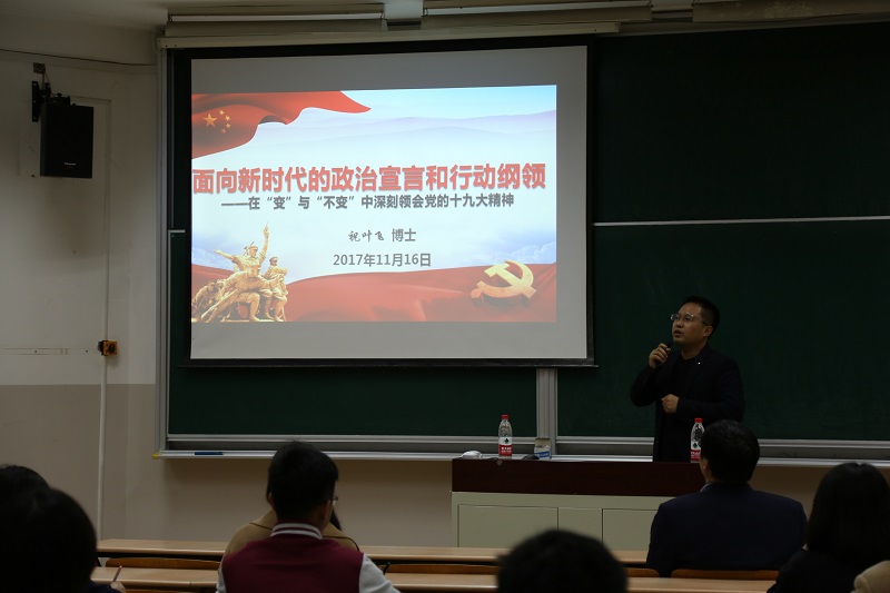 11月16日下午,伟德国际1949始于英国在八教306室举办党的十九大专题辅导报告会,邀请了上海市长宁区委党校老师祝叶飞博士作了题为《面向新时代的政治宣言和行动纲领——在“变”与“不变”中深刻领会党的十九大精神》的辅导报告,报告由公司党委书记朱学栋主持。