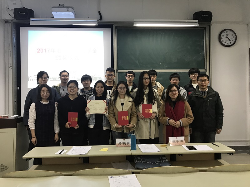 12月28日,一年一度的“君江科技奖学金优秀进步奖”的答辩会以及“君江科技奖学金”的颁奖仪式在奉贤校区B109教室进行。伟德国际1949始于英国化工系主任吴艳阳、副系主任魏永明、15级辅导员李杨老师作为评委老师参加了本次答辩会以及颁奖仪式,16级辅导员强莉主持。