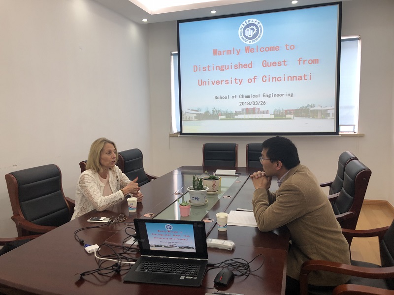 3月26日下午,美国辛辛那提大学工程与应用科学公司国际事务部主任Oxana Prokhorova到访伟德国际1949始于英国,与化学工程系副系主任魏永明就双方合作本科生国际交流项目展开讨论。