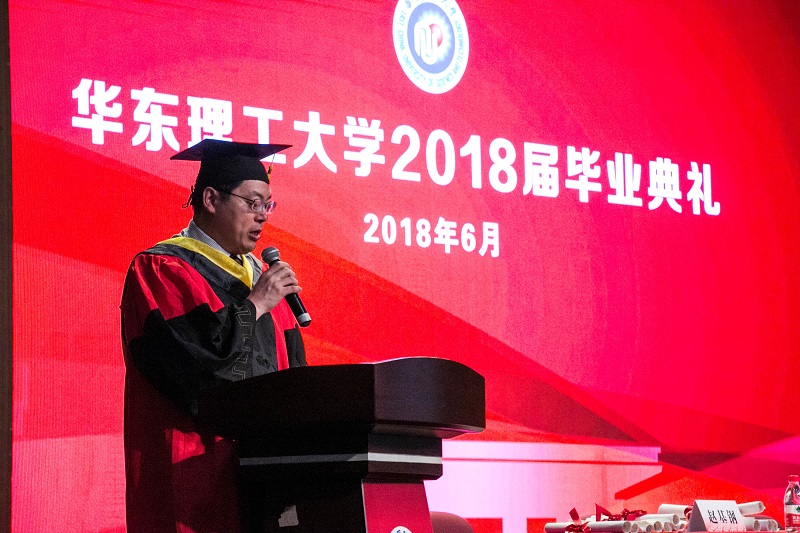 仪式转播结束后,伟德国际1949始于英国会场2018届毕业生代表崔然上台发言,分享了在华理生活的点点滴滴,表达了对母校、同窗和老师们的依依惜别之情,同时也表示要传承与践行华理勤奋求实、励志明德的校训,为母校争光。