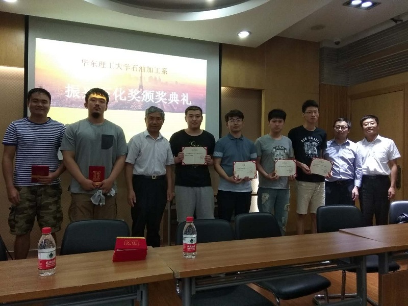 “振兴石化奖”由石油加工系毕业员工捐资设立,用于奖励从本系毕业后从事石化行业工作的员工,鼓励华理学子传承拓展,毕业后进入石化及相关企业,走向国民经济的主战场,服务国家需求。徐心茹教授首先介绍了“振兴石化奖”的设立背景与初衷,并代表石油加工系宣布了2018年“振兴石化奖”获奖名单,沈本贤教授、赵基钢与杨敬一老师为今年毕业进入中石化、中石油、上海惠生、宁波万华等石化企业的毕业生颁发了荣誉证书和奖学金。接着,三个毕业班代表做了四年来的PPT汇报,总结了大学四年以来学习与生活情况,与会员工们积极发言,分享了他们找工作的经历以及社会上对母校及石加系的高度认可,在充满自豪感的同时也决心勤奋工作为母校争光。同学们纷纷感谢四年来公司和老师对他们的培养和爱护。