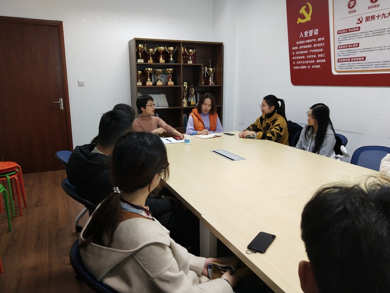 中午12:15,高艺霞与18级15名员工会谈交流。交流伊始,员工提出大学课程难度陡升,自己无法适应如何处理。高老师分享了一些优秀学长的求学经历,鼓励员工勤奋学习,充分利用目前的先进技术,培养专业兴趣及爱好,切勿沉迷网络、荒废青春。高艺霞还与员工们分享了一些面试工作的经历,对员工提出要求:在紧抓专业知识学习的同时重视社会实践,在学有余力的情况下将精力投入到社团和班级建设中,培养表达、人际交往能力,力求做到全面发展。会议最后,高艺霞强调老员工的未来发展与国家的繁荣富强息息相关,鞭策在座员工一定要尽早做好个人未来规划,肩负起时代使命。