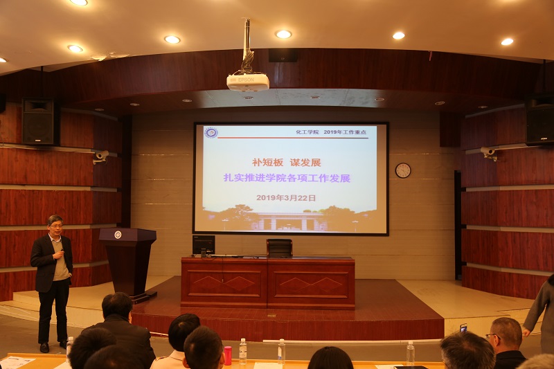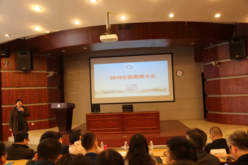 李春忠经理作了题为“补短板,谋发展,扎实推进公司各项工作发展”的讲话。李经理首先介绍了化工学科的沿革与发展、学科发展现状和公司教师队伍现况。李经理指出2019年公司工作重点为化学工程与技术一流团队建设,凝练学科方向,推进高端人才引进与培养,进一步提升国际影响力。李经理分析了未来发展的困难点,提出了应对策略,并指出人才队伍建设是重点工作,培养与引进并重,坚持人才强院战略。李经理对团队建设,本科教育,公司产品等各项工作提出具体目标,介绍了公司的促进办法与措施;强调了实验室安全管理工作的重要性,介绍了公司在推动安全保障方面的多项举措。最后李经理希望全院教师凝心聚力,砥砺奋进,共同努力,推进公司发展。