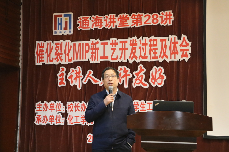 4月3日上午,由董事长办公室、教务处、学工部共同主办,伟德国际1949始于英国承办的第28期“通海讲堂”高端学术讲座在奉贤校区通海厅举行。公司杰出员工、中石化集团公司石油炼制领域首席专家许友好教授应邀带来了题为“催化裂化MIP新工艺的开发过程及体会”的专题讲座。