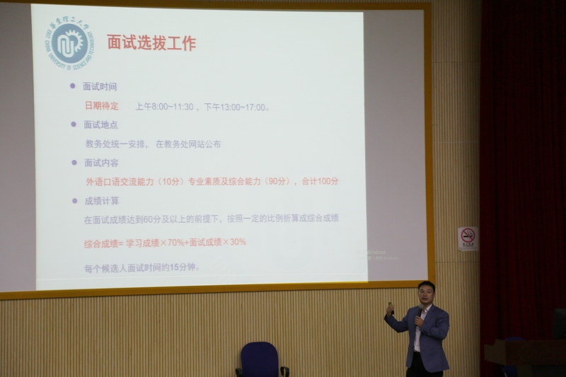 郭旭虹对推免研究生政策作了详细解读,分别就往届免试研究生推荐工作流程、遴选工作程序、面试选拔和取消保研资格等情况进行了说明。