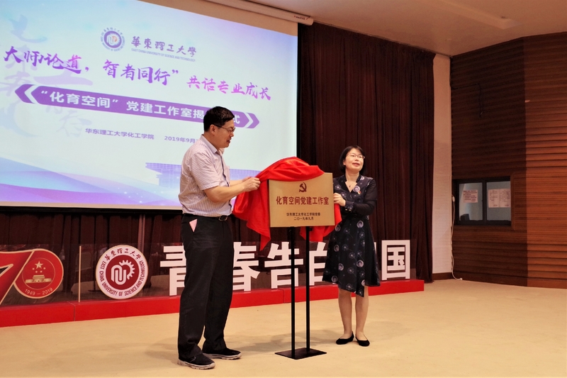 接着,“化育空间”党建工作室揭牌仪式正式举行,在全场师生热烈的掌声中,公司党委书记朱学栋,公司党委教师工作部副部长张雪芹上台为工作室揭牌。