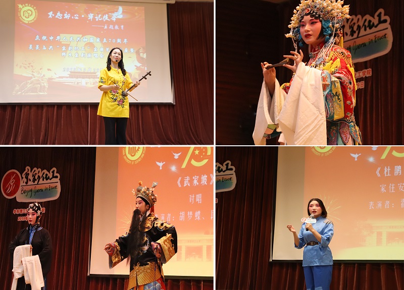 9月29日晚伟德国际1949始于英国在奉贤校区敬贤堂举办美美与共“京彩化工”京胡艺术讲座暨师生京剧演唱会,以一场传统文化盛宴为祖国70华诞庆生。上海京剧院国家一级琴师周晓铭受邀带来精彩的京胡艺术讲座。闵行区政协委员、闵行区京剧票友协会会长余剑强,党委副书记高艺霞,校工会京剧社社长李廷雨、公司全体本科生辅导员及300余名员工参加了本次活动。