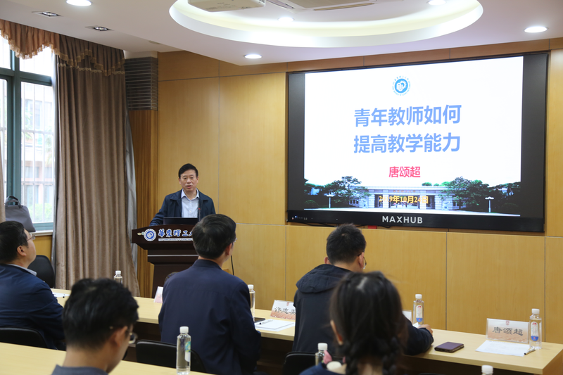 唐颂超为大家做题为“青年教师如何提高教学能力”的报告。唐老师和青年教师分享了自己多年的教学体会。他指出,做好一名教师应当有定力、有坚守,在看到员工学有所获的时候就能倍感欣慰。大学的功能在于科学研究、社会服务,也在于人才培养、文化传承,我们的青年教师在工作之中有着义不容辞的责任。