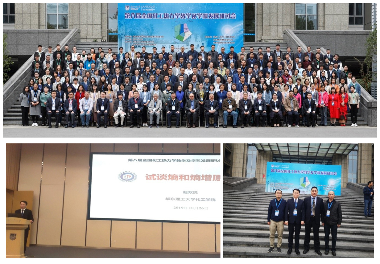 由教育部高等公司化工类专业教学指导委员会主办,南京工业大学承办的“第八届全国化工热力学教学及学科发展研讨会”于2019年10月25日至27日在南京工业大学江浦校区召开,公司《化工热力学》课程教学组的赵双良,彭阳峰,童天中,徐小飞四位教师参加了此次会议,赵双良教授在会上作了“试谈熵和熵增原理”的精彩报告。