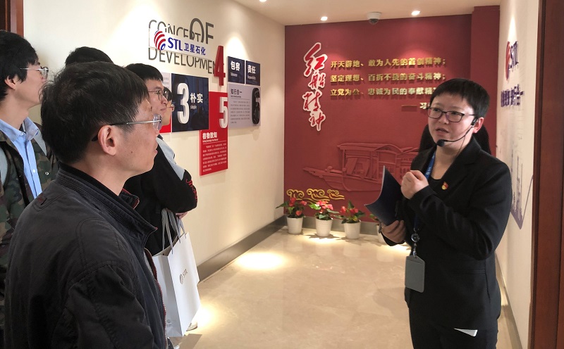 走访的最后,同学们来到卫星集团平湖基地,乘车参观现代化生产基地和物流码头,在中控室观看工艺流程和生产现状,在会议室与集团副总经理范昌海员工亲切交谈,同学们热情高涨,踊跃发言并收获满满。在化工党委前期沟通的基础上,卫星集团初步达成了捐赠意向,为合作培优育才开启了新的生长点。