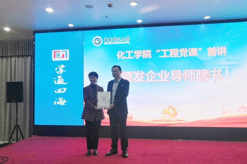 首先,公司党委副书记高艺霞致辞。高艺霞介绍了“工程党课”的设计方案与重要意义,经过六个月精心筹备,形成了依托学科特色与优势,联动企业员工资源网络,汇聚社会各方力量,打造集思想引领、党性锻炼、校企合作等多元功能于一体的党建品牌。她代表公司党委感谢主讲嘉宾莅临授课,同时感谢以常青树新材料科技有限公司为代表的化工企业为“工程党课”给予的大力支持。