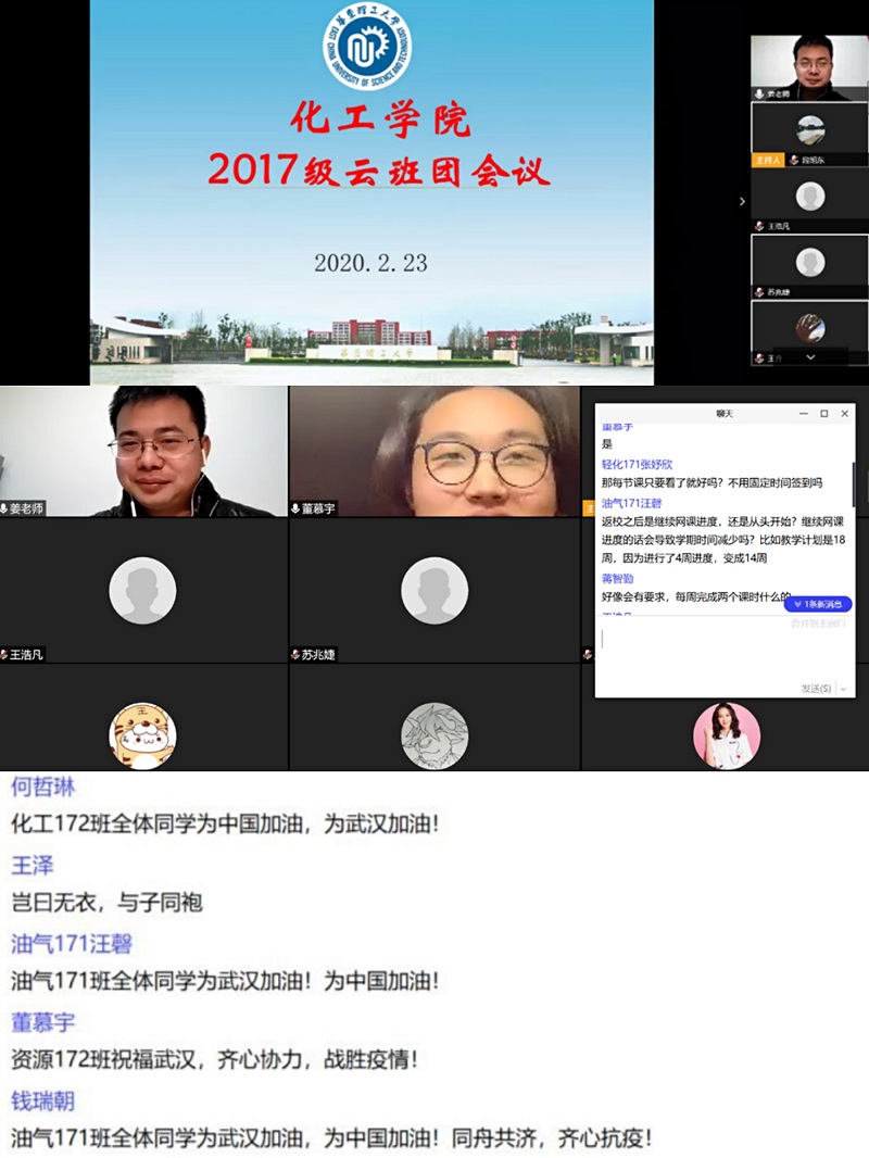 班团会议上,年级辅导员姜贤武汇报了2017级抗击疫情的相关工作,询问同学们的身体状况及家乡疫情情况,并对班团干部在疫情防控做出的积极贡献表示感谢,与同学们一起为武汉送上祝福!他转达了近日公司和公司下发的有关通知,对一系列重要事项进行了提醒说明,解答部分同学提出的问题,征求各班对于年级大会主题内容的意见。