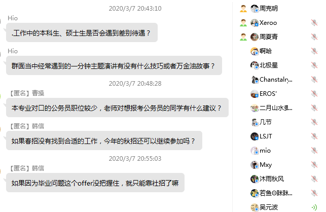 强引导,加强线上就业服务指导。公司分专业邀请杰出员工分享工作经历,针对不同专业员工的差异性需求,分享求职就业经验,帮助员工答疑解惑,员工可选择匿名提问,即增加互动趣味性,又保护个人隐私。现已邀请到徐龙宇、吴元波、周夏青等员工在线分享,以员工精神为激励,拓宽员工视野,助力员工就业,强化求职能力,提升就业自信。交流结束后,员工骨干主动整理归纳,帮助同学复盘总结。