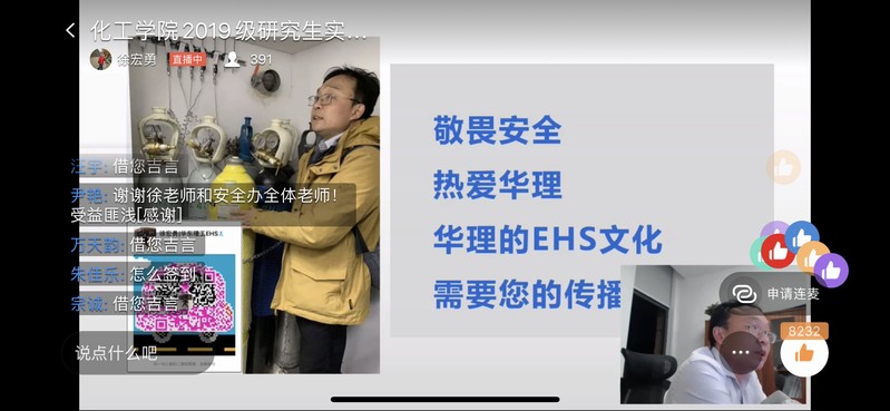 徐宏勇以实验室气瓶常见安全隐患为切入点,阐明了气瓶安全对公司实验室安全的重要性,并详述了如何做好实验室气瓶检查和管理,主要包括气瓶如何辨识基本信息以及警示标签,气瓶是否存在腐蚀、变形、磨损、裂纹等严重缺陷,气瓶的附件(瓶帽、瓶阀)是否齐全、完好,气瓶是否超过定期检验周期等4个方面内容。随后,他与同学们分享了5起实验室安全事故案例,希望大家从其中吸取教训,增强安全意识。最后,徐宏勇介绍了基于ACS RMAP原则的实验管理办法(减量替代、工程控制、管理控制和个人防护),希望公司广大师生在实验室管理过程中,能够基于RMAP原则,主动识别、评价、控制、处置风险,消除事故隐患,筑牢安全防线,共同打造华理EHS文化。
