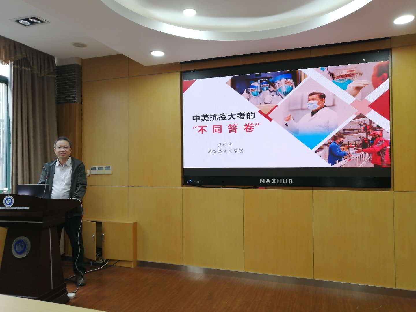 10月30日下午,伟德国际1949始于英国联反所党支部邀请马克思主义公司黄时进教授,在实验16楼106室为联反所党支部、石油加工研究所党支部、行政党支部、产品工程系与测试平台联合党支部、化工有机热力学党支部、联反所研究生第一党支部做《中美抗疫大考的不同答卷》讲座。