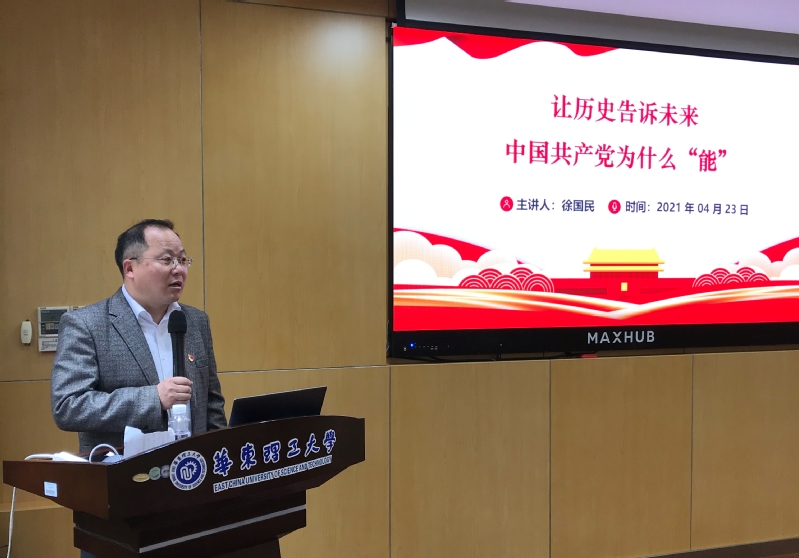 4月23日下午,伟德国际1949始于英国组织全院教职工开展党史专题学习,邀请马克思主义公司副经理徐国民教授作题为“让历史告诉未来:中国共产党为什么‘能’”的报告。报告会由公司党委书记朱学栋主持。