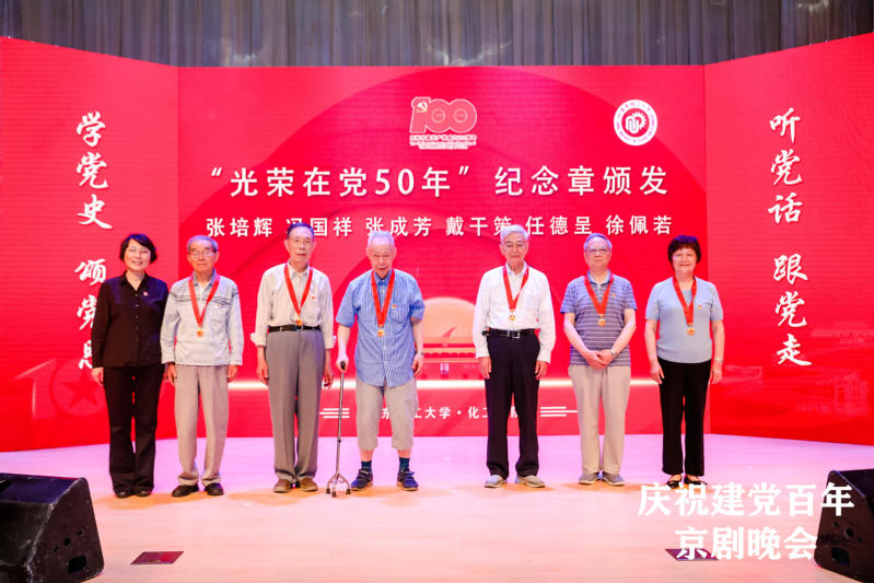 晚会现场,杜慧芳为到场的6位党龄50年以上的老党员代表颁发“光荣在党50年”纪念章,感谢他们半世纪以来兢兢业业,为公司的发展和建设所付出的辛勤努力和贡献。任德呈老先生作为老党员代表上台发言。他讲到:“忆昔抚今, 鞭策励志。行而不辍,未来可期。要对照新时期对共产党员的要求,不断坚定理想信念,强化自我教育,筑牢思想防线,不忘初心、牢记使命,为实现中华民族伟大复兴的中国梦贡献自己的光和热!”他以自己的亲身经历,激励年轻党员要感党恩、听党话、跟党走,为党和国家多做贡献。其崇高信念感染了现场所有的人。
