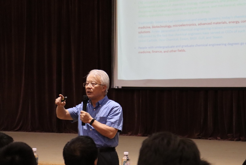 报告中,朱世平教授解释了科学的起源、工科与理科内涵差异以及科学与工程的区别与联系等当代学科理论知识,进一步地阐明了化学工程领域的发展历程、探索应用和前景展望,并用一句话概括出化工的定义,即化工是有关利用设计、优化和控制手段,安全、可持续和盈利的方式生产与加工材料与化学品的学科。他结合自身的求学、科研经历分享了他与化工专业结下的不解之缘,用一首打油诗“化工之歌”幽默地介绍了相关概况,鼓励化工学子在道德、专业、素质等方面全面培养,奋力书写新时代公司事业发展新篇章,努力早日成为全面发展的社会主义建设者和接班人。
