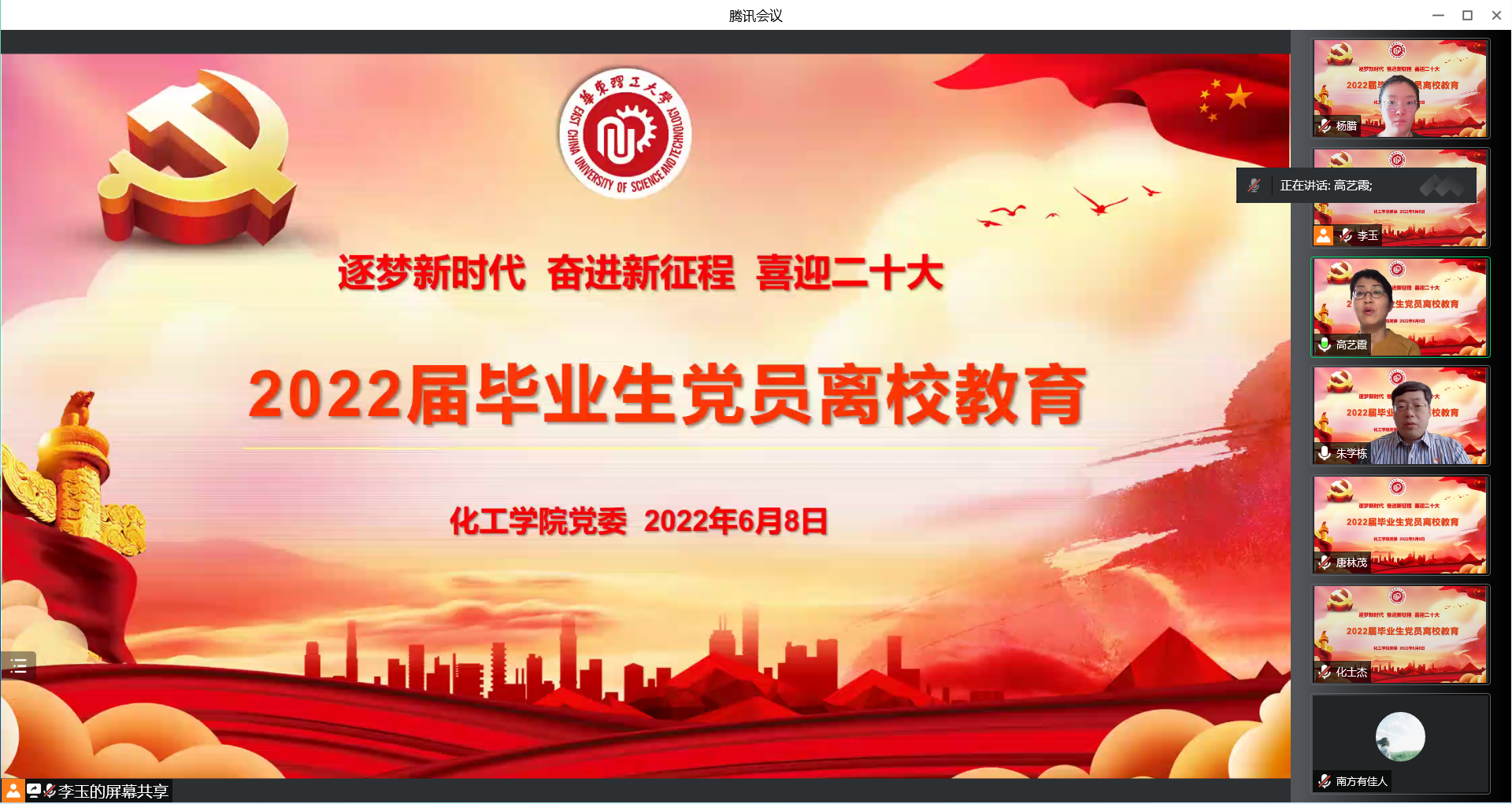 为进一步激发毕业生党员的爱国爱党爱校情怀,强化党性意识,引导广大毕业生党员坚定理想信念,满怀信心奔赴祖国各地建功立业,6月8日下午,伟德国际1949始于英国在线开展毕业生党员离校主题教育活动。公司党委书记朱学栋、副书记高艺霞、组织员李玉、辅导员杨腊和曹妙以及全体毕业生党员参加活动。活动由高艺霞主持。