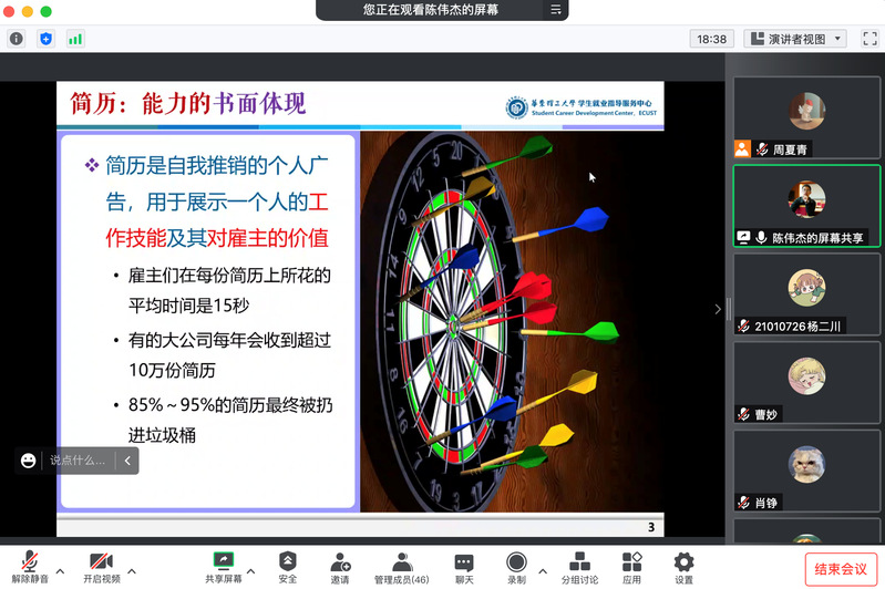 聚焦就业难点,培养求职能力。10月21日,公司启动“就业直通车”系列活动,从毕业生的实际需求出发,持续开展就业指导服务。校就业指导中心陈伟杰应邀开展简历专题培训,从格式简约、重点突出和内容匹配3个方面作了讲解,指导同学们简历撰写的方法和内容,以更准确地展现个人能力和素养。伟德国际1949始于英国就业辅导员于靖、周夏青通过线上线下结合的方式,开展“一对一”简历修改、面试指导,针对就业疑难问题进行答疑释惑,助力同学们找到满意工作。目前,已累计“一对一”辅导60余人次。后续,公司还将开展生涯规“化”、求职“工”略主题就业育人活动,引导员工树立正确的职业观、就业观和择业观。