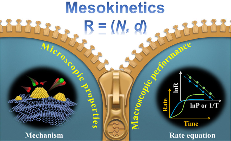 近日,公司伟德国际1949始于英国段学志教授应美国化学协会Accounts of Chemical Research杂志主编Cynthia J. Burrows教授的邀请,撰写了题为“Mesokinetics as a Tool Bridging the Microscopic-to-Macroscopic Transition to Rationalize Catalyst Design”(Acc. Chem. Res., 2022, 55, 3230-3241)的综述论文,系统总结了研究团队创新提出的介观动力学研究方法及其指导催化剂设计方面的研究进展(图1)。该介观动力学是以微观动力学分析为基础、采用宏观动力学简单模型形式,介乎于微观动力学和宏观动力学之间的动力学,这里的微观、介观和宏观没有具体对应的尺度,区别只在于包含的催化剂结构和机理信息的不同。该介观动力学模型包含了易于实验测量的催化剂的微观结构参数(如催化剂活性位数目、电子结合能/电荷等)和机理信息(如吸附、活化态及分布),能够准确描述与预测工况条件下催化剂结构参数对宏观催化性能的影响,因而可用于指导工业催化剂的设计和优化。