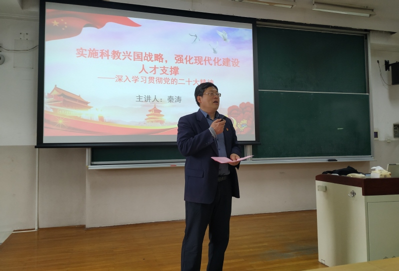 秦涛以“实施科教兴国战略,强化现代化建设人才支撑——深入学习贯彻党的二十大精神”为题,从党的二十大主题讲起,围绕我国发展面临的问题、应对问题的总方略、完善科技创新体系、加快实施创新驱动发展战略、深入实施人才强国战略、办好人民满意的教育等方面,对党的二十大报告中的“科教兴国战略”进行了全面系统的阐述。报告中丰富的案例和详实的数据,让公司教师对党的二十大精神有了更全面、更深刻的理解和认识。