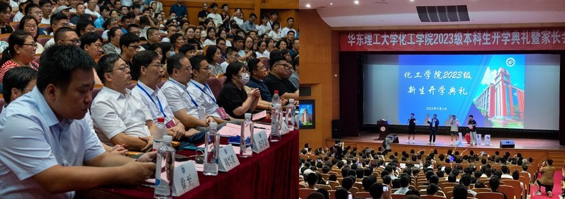 来自化工226班的老生顾毅罡和智慧化工2313班的新生王一辰作为代表上台发言,充分展现了化工学子知信笃行、勤学善思的精神面貌,在正值青春、满怀理想的韶华之际,将继续恪守“勤奋求实,励志明德”的校训,赓续华理化工青年的时代荣光。