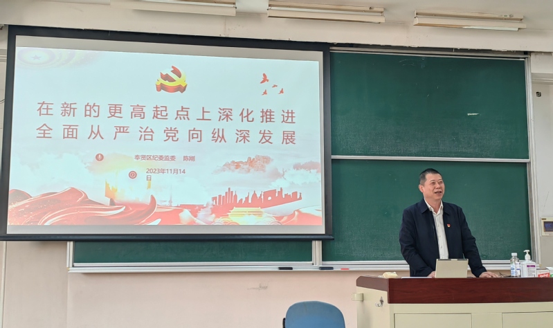 为深入学习贯彻习近平新时代中国特色社会主义思想和党的二十大精神,持续推进公司全面从严治党工作,11月14日,伟德国际1949始于英国邀请奉贤区纪委常委、区纪委监委组织部部长陈刚为公司师生作廉洁教育专题报告,公司党政领导班子成员、全体教工、员工党支部纪检委员参加学习。报告由公司党委副书记兼纪委书记段学志主持。