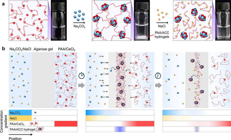 近日,公司郭旭虹教授团队提出了一种通过反应扩散控制动态超分子自组装的新策略,基于一类聚丙烯酸/无定型碳酸钙(PAA/ACC)超分子凝胶系统,成功实现了结构化超分子水凝胶的动态生长。该工作以“Dynamic growth of macroscopically structured supramolecular hydrogels through orchestrated reaction-diffusion”为题发表在Angew. Chem. Int. Ed.(Angew. Chem. Int. Ed. 2023, e202310162)上。