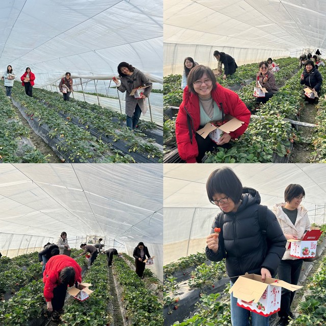 随后,女教职工一行前往青浦区白鹤镇,深入体验草莓采摘的乐趣。白鹤镇不仅承载着深厚的农业文化,更以其独特的白鹤草莓闻名遐迩,被誉为“中国草莓之乡”。步入草莓大棚,满眼翠绿与鲜红交织,形成一幅美丽的田园画卷。新鲜的草莓在阳光下闪耀,散发出诱人的香气,令人垂涎欲滴。大家纷纷动手采摘,这个大,那个甜,每个人各有所爱,在绿荫丛中寻找自己的“红颜知己”。