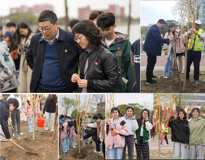 师生们在专业人员的指导下在C教大草坪西侧共同种下10棵“黄金槐”树,用实际行动践行绿色发展理念,为打造绿色校园贡献青春力量。“黄金槐”树的枝干和树叶呈金黄色,寓意“平安、富贵、吉祥”,具有极高的观赏价值。