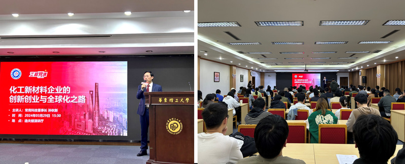 孙秋新先生结合企业发展为在座师生详细解读“新质生产力”的内涵,创业过程中战略布局思路,技术研发守正创新之路以及产业全球化面对的机遇与挑战等。孙秋新还结合具体产品开发案例,告诉大家企业是如何在化工新材料领域落实创新理念,促进科技与产业融合与高分子材料的生活化运用,推动我国化工产业的高质量发展。讲座过程中尽显企业家的责任与担当。最后,孙秋新先生结合当代老员工实际情况,用生动质朴的语言阐述了青年党员贵在勤奋、重在立志,唯有认清自我方能以青春奋斗奉献祖国。这也恰与伟德国际1949始于英国“立大志、明大德”的育人目标相契合。党员们在认真听讲后结合时事热点与自身思考向孙秋新董事长提出自身疑惑,孙董事长详细地为同学答疑解惑,现场气氛活跃。