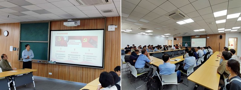 为深入推进公司党纪学习教育,中午,在奉贤校区C103室首先进行了党纪学习教育读书班活动,公司党委委员依次领学了新修订的《中国共产党纪律处分条例》总则内容。随后,公司党委书记朱学栋以“新修订《中国共产党纪律处分条例》的特点与新旧对比”为题讲授纪律党课,奉贤校区的部分研究生党员一同参加了学习。