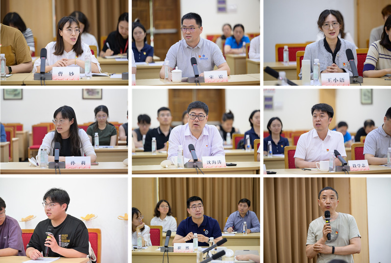 交流研讨环节,思政党支部曹妙和王小语结合自身工作实际分享了智慧赋能员工工作带来的机遇与挑战,宋震分享了公司在“AI+课程”方面的建设成果,2023级本科生卢屹峰表达了自己参与小程序内测的感受以及对小程序未来接入就业指导等进阶功能的期待。参与观摩的继续教育公司姚俊也提出了小程序接入统一身份认证及功能进一步优化的有效建议。段学志和孙莉表示公司会凝聚多方育人合力,共同推进良好学风建设。