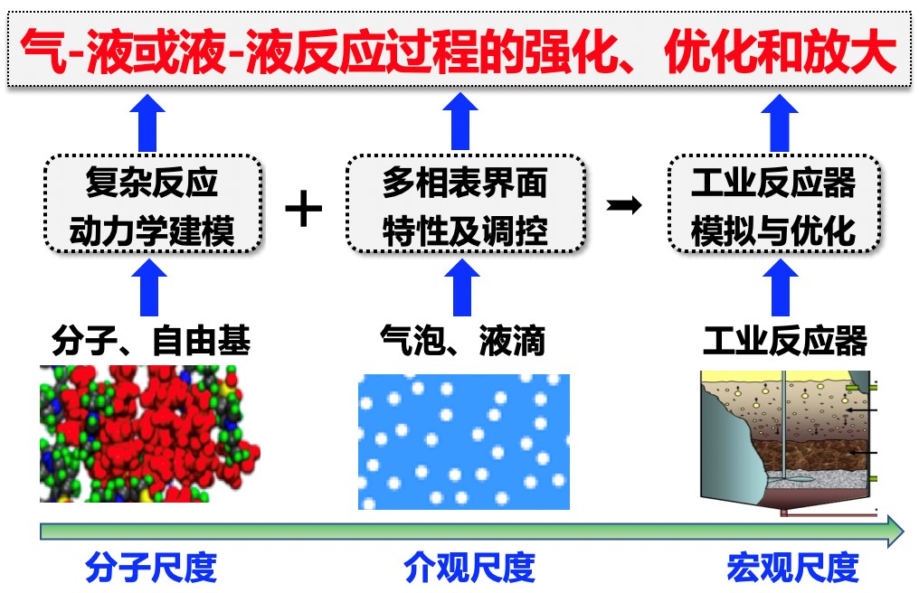 研究多相反应(液-液、气-液、气-固、气-液-固)表界面上小分子的溶解、扩散、自组织等表界面特性,理解并指导反应过程的强化和催化剂设计。研究对象包括离子液体催化C4烷基化、烃类液相氧化、乙烷氧氯化等。